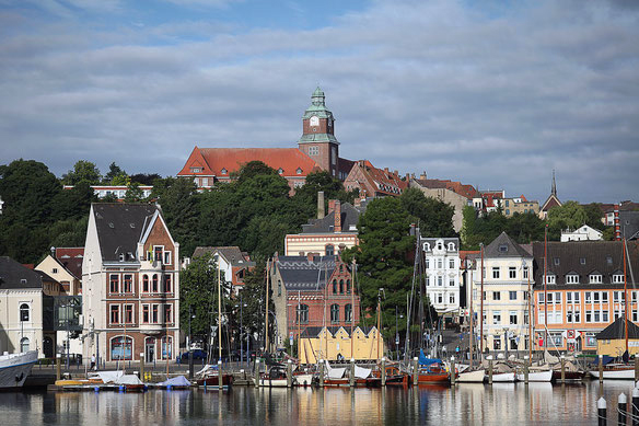 Flensburg liegt am Ende der Flensburger Förde, die mit dem Hafen direkt in der Mitte der Stadt endet. Dieser besitz sowohl einen Museums- wie auch Freizeithafen. In